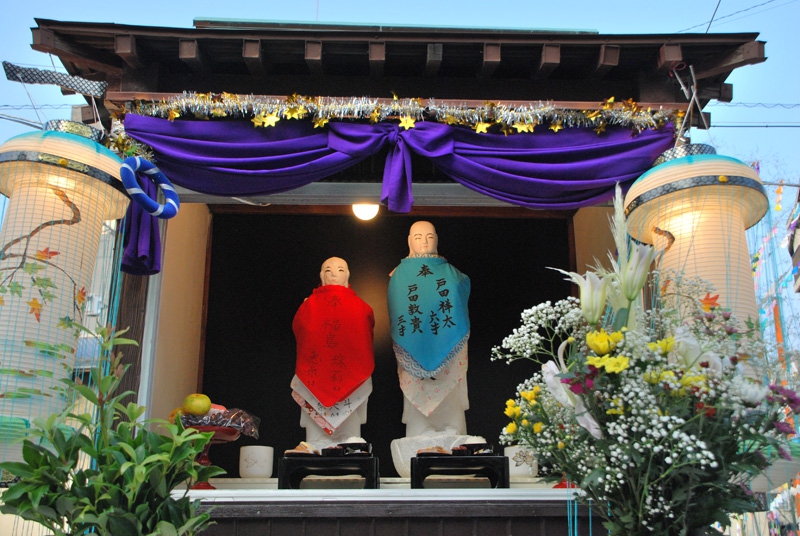 この日は、お地蔵様を奉っているお寺や個人、地区の人たちの手で地蔵堂がきれいに飾られ、お供え物をして子ども達が来るのを待ちます。