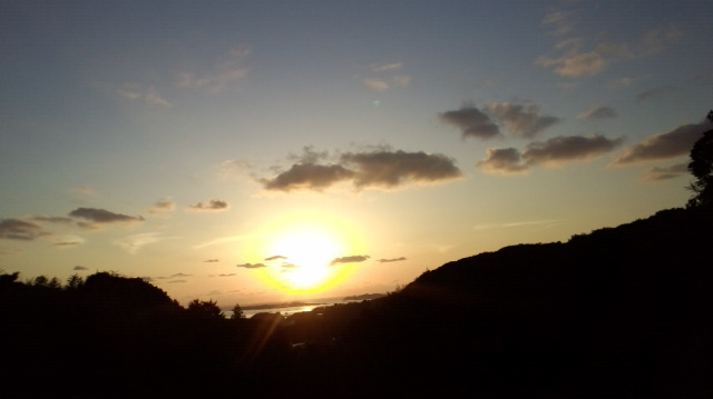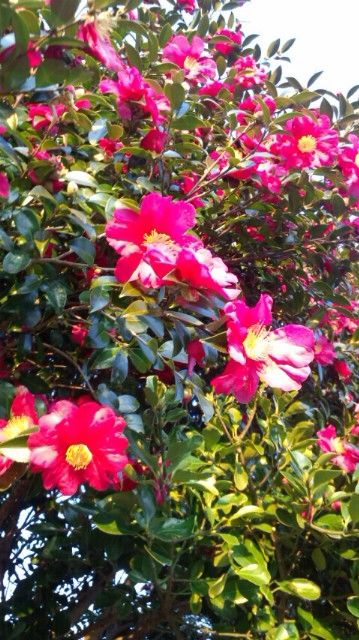 今年も残りあとわずかですね!最近は、空気が冷たくよく澄んでいます。こんな日は、夕日がとっても綺麗です。三島の方角に沈む夕日にみとれて、年末の夕方の慌ただしさをしばし、忘れました。夕日を浴びて、近くの垣根の山茶花の花が、輝いて見えましたよ。もうすぐ、今年もおしまい!お墓や地の神様、お寺や神社のお掃除もしないといけません。