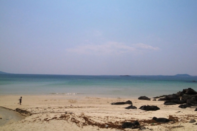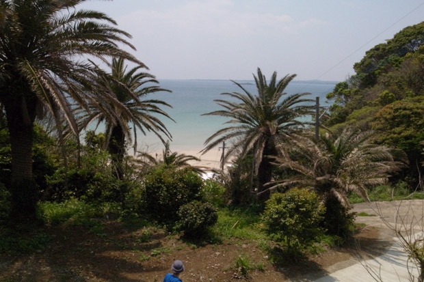 売店から坂道を下っていくと、海が見えてきます。「そうそう、海もきれいやし、ときどき波が高くなって、その波にもまれて遊ぶのがおもしろいじゃん!」だそうです。波が高い、と言っても、本土の人から見ると、そのおだやかさに驚くのでは?と思います。